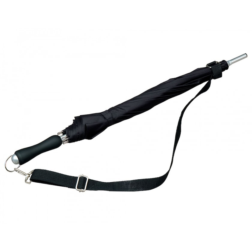 Holdbar paraply med glasfiberkonstruktion og bærerem. Paraplyen er automatisk og har et behageligt skumgummihåndtag. Køb paraply med bærerem hos Axon Profil!
