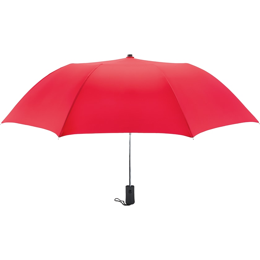 2-sektions kompakt paraply som kan købes fra 10 stk. Åbningen er automatisk og lukning er manuel. Ribber og stang i stål. Håndtaget er gummibelagt.