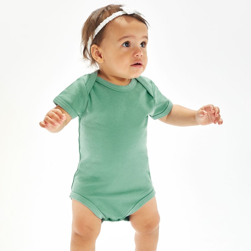 Bodysuit til babyer. Farverne sort, hvid, camouflage green, cobalt blå, fuchsia og organic natural er produceret i 100% økologisk bomuld. Farven heather grey melange er produceret af 85% økologisk bomuld og 15% polyester. farverne mocha og charcoal grey melange er produceret af 60% økologisk bomuld og 40% polyester. Øvrige farver er produceret af 100% bomull. Størrelse 86/93 findes kun i farverne sort og hvid.