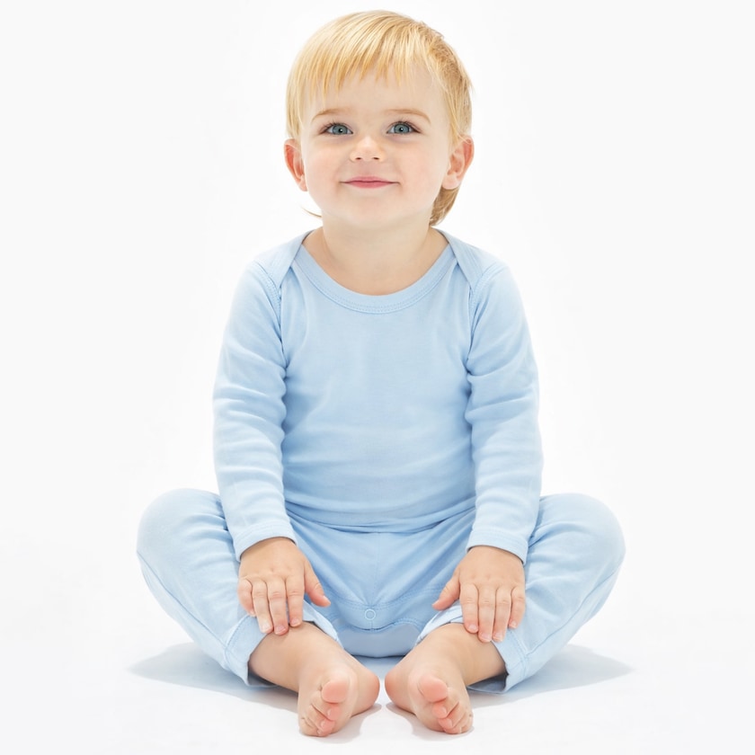 Sparkedragt til børn. Produceret i 100% bomuld (foruden farven heather grey melange, som er produceret i 85% bomuld og 15% polyester). En blød og fleksibel sparkedragt til børn.