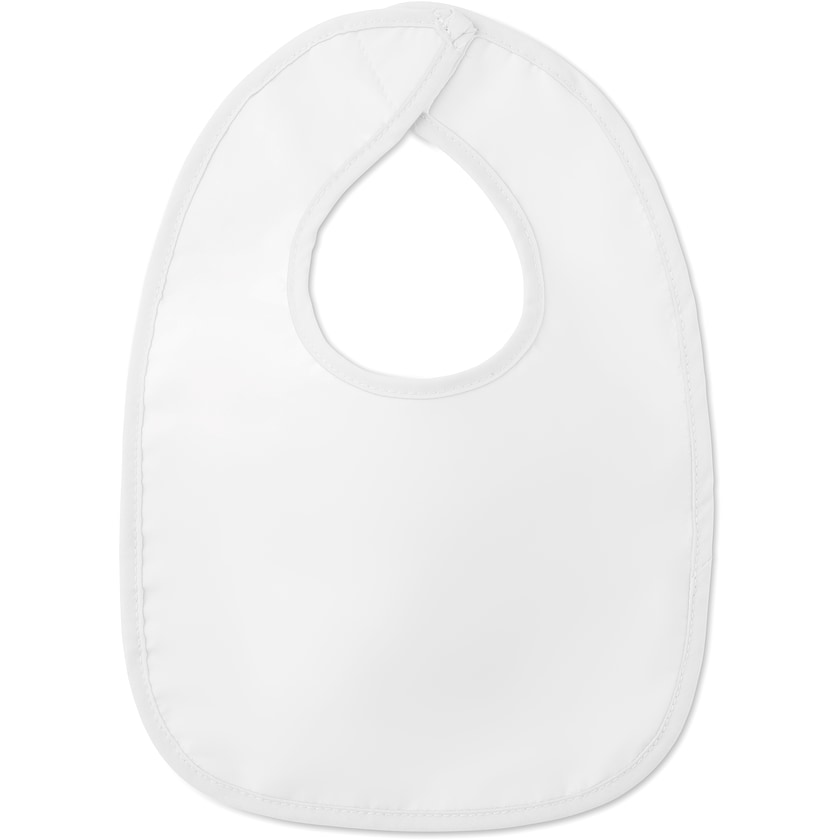 Hagesmæk til børn. Hagesmækken er produceret i polycotton, dvs. 75& bomuld og 25% polyester, med en bagside i PEVA. En lækker reklameartikel til børn. Bestil hagesmækker med tryk hos Axon Profil!