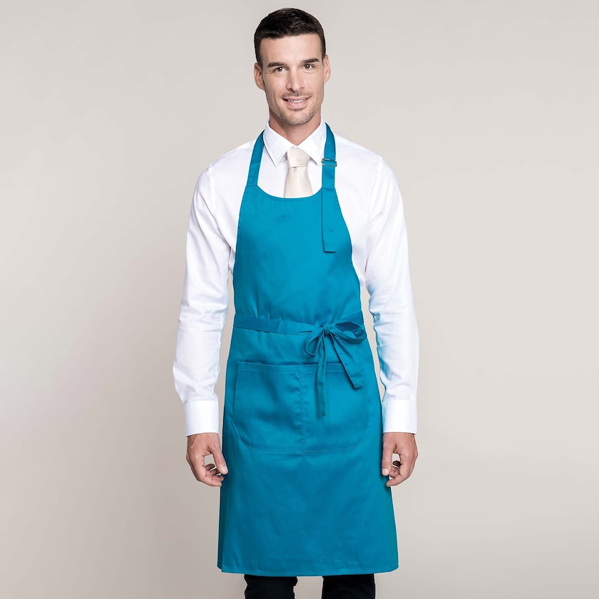 Prisvenligt forklæde som fås i mange forskellige farver. Forklædet er produceret i en slidstærk polyesterblanding. Klarer maskinvask op til 60 grader. På forsiden findes en stor lomme. Længede 90 cm, bredde 76 cm.