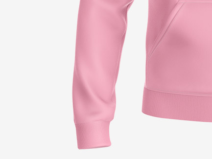 - Hætte og kængurulomme. Her kan man desværre ikke trykke.