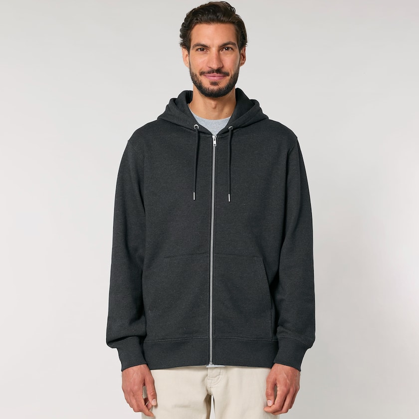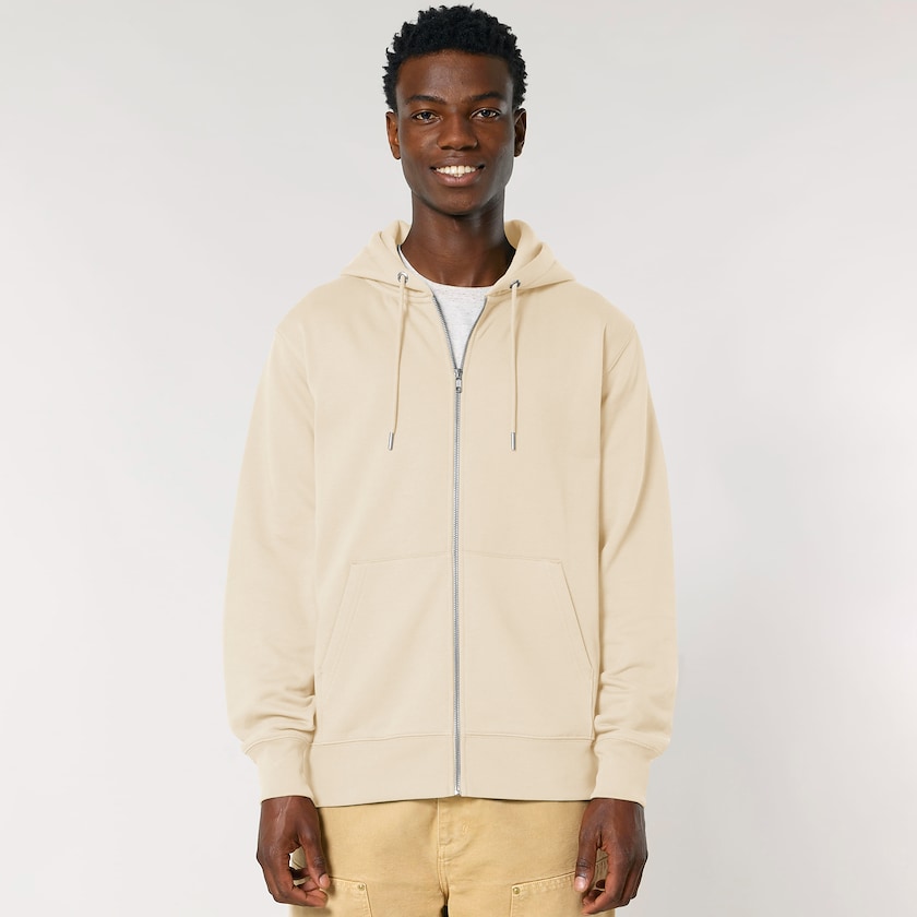 Miljøvenlig hættetrøje for herrer og damer med lang lynlås. Hættetrøjen er fremstillet af 100% økologisk bomuld.