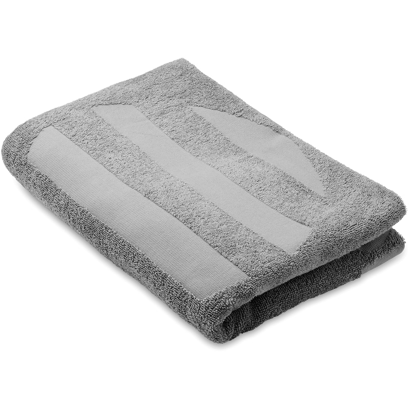 Stort badehåndklæde med din logotype i relief. Hvor dit logo optræder, mangler stoffets normale frottéløkker, hvilket skaber en smuk reliefeffekt. Ryggen er uden aflastningseffekt. Du vælger selv farven på håndklædet ved at indtaste den ønskede Pantone-kode. Stoffet vejer 350 g/m². Badehåndklæderne leveres individuelt pakket i polyposer. Fremstillingen foregår i Europa.