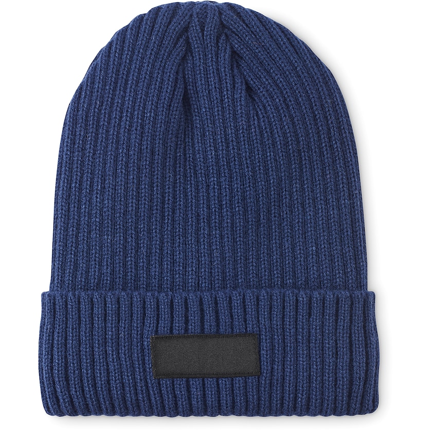 Strikket beanie hue med sort etiket med dit logo. Beanie huen er fremstillet af akryl og har 3M-fold. Unisexmodel som passer til alle størrelser.