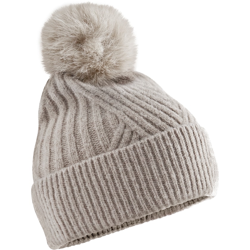 Beanie hue med kraftig rib og stor kvast. Balzers er lækker blød og dejlig at have på på kolde vinterdage. Lavet af 50% genbrugspolyester, 34% nylon, 13% akryl og 3% elastan.