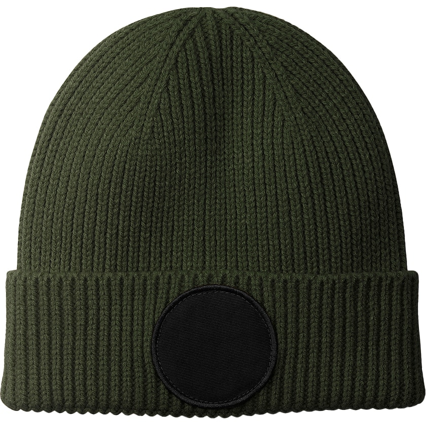 Ribstrikket beanie hue med rund sort etiket. Huen er fremstillet af en blød blanding af 52% genbrugspolyester, 47% akryl og 1 % elastan. Polyesteren består af op til 50% af genbrugsmateriale. Mærkningen kan enten digitaltrykkes eller broderes.
