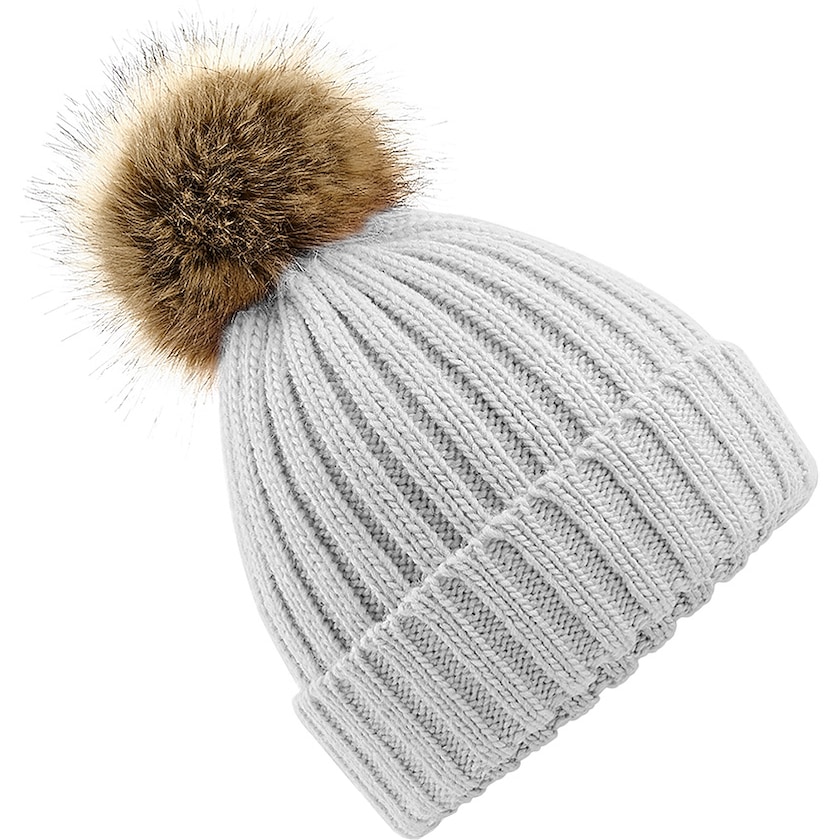 Kabelstrikket beanie med stor kvast i pelsimitation. Beanien er i unisex model og er lavet i luksuriøst blødt akryl. Kvasten kan tages af hvis huen skal vaskes.