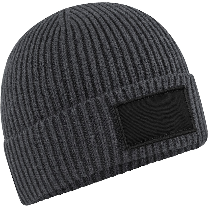 Miljøvenlig beanie hue med sort etiket med dit logo. Hurst er fremstillet af en miljøvenlig blanding af genbrugspolyester, akryl og elastan. Etiketten er fremstillet af bomuld.