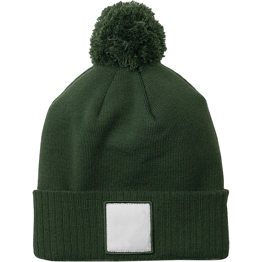 Miljøvenlig beanie hue med hvid stofetiket. Beanie huen har et lækkert ribstrikket stof af genbrugspolyester. Etiketten kan enten mærkes med digitaltryk eller brodering. Beanie huen har et fleece for som holder dig varm selv på kolde dage.