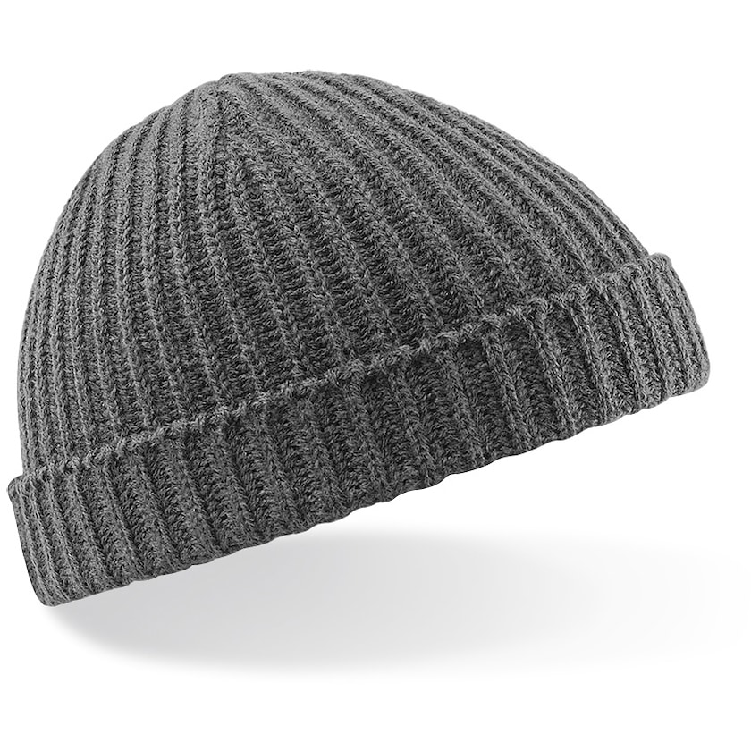 Trendy strikket beanie med ribkant. Huen er beregnet til voksne, men er lille i størrelsen.