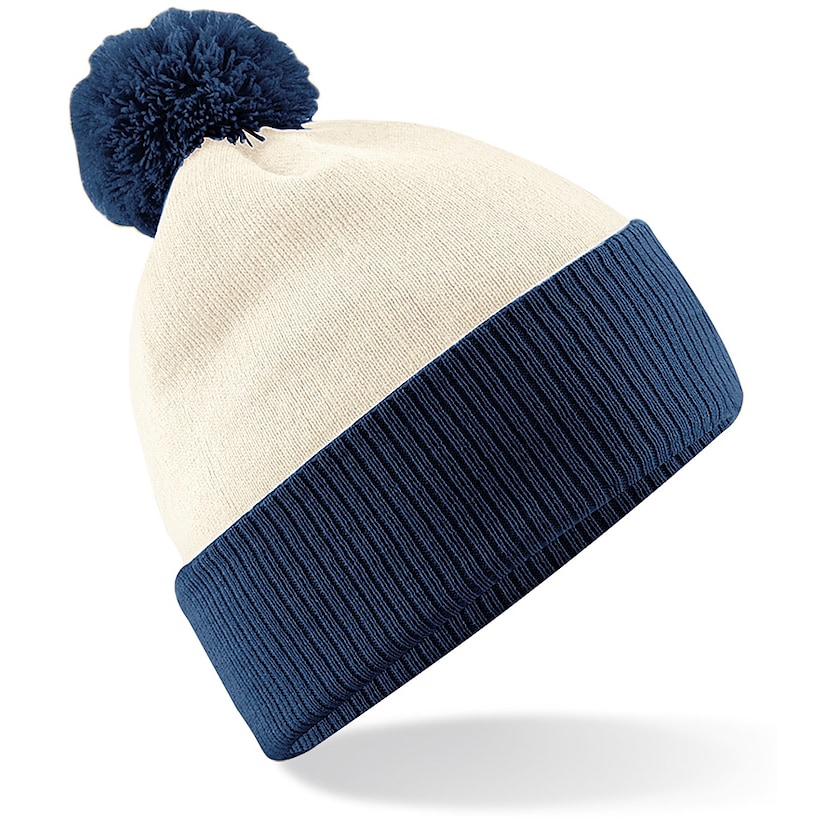 Smuk tofarvet hue med bredt opsmøg og stor kvast.