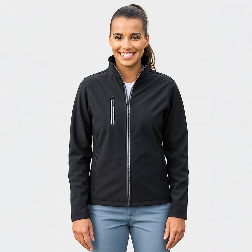 Softshelljakke til damer med super hurtig levering. Jakken har en brystlomme samt to sidelommer. Fås også som herremodel. Brodering kræver længere leveringstid end tryk. Findes også som herremodel.