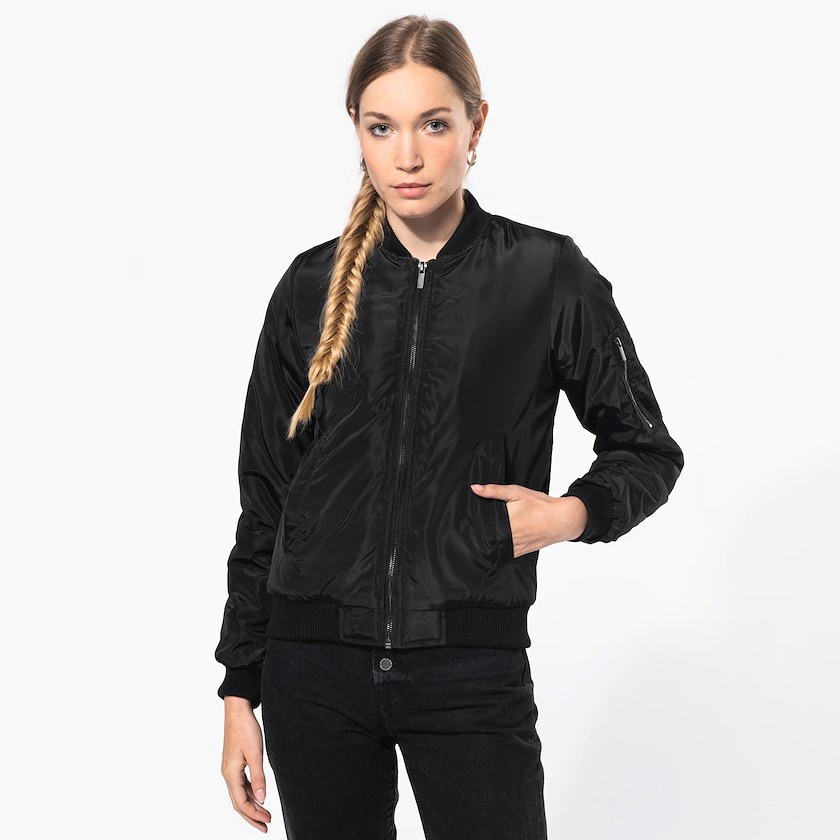 Bomberjakke til damer. Jakken har de klassiske detaljer. Med sidelommer, ærmelomme samt en inderlomme. Findes også som herremodel.