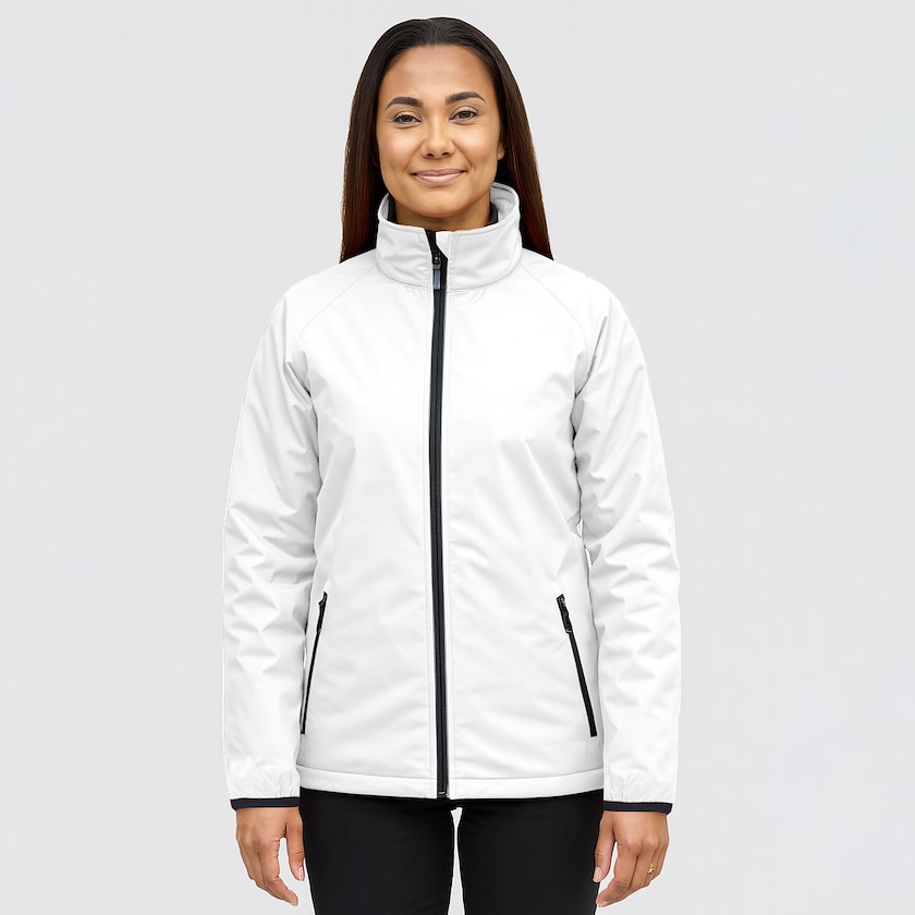 Letvægtsjakke med hætte for damer. Stoffet modstår at blive vådt. Sidelommerne er udstyret med lynlåse og og indvendigt er der inderlommer. Findes også som herremodel.