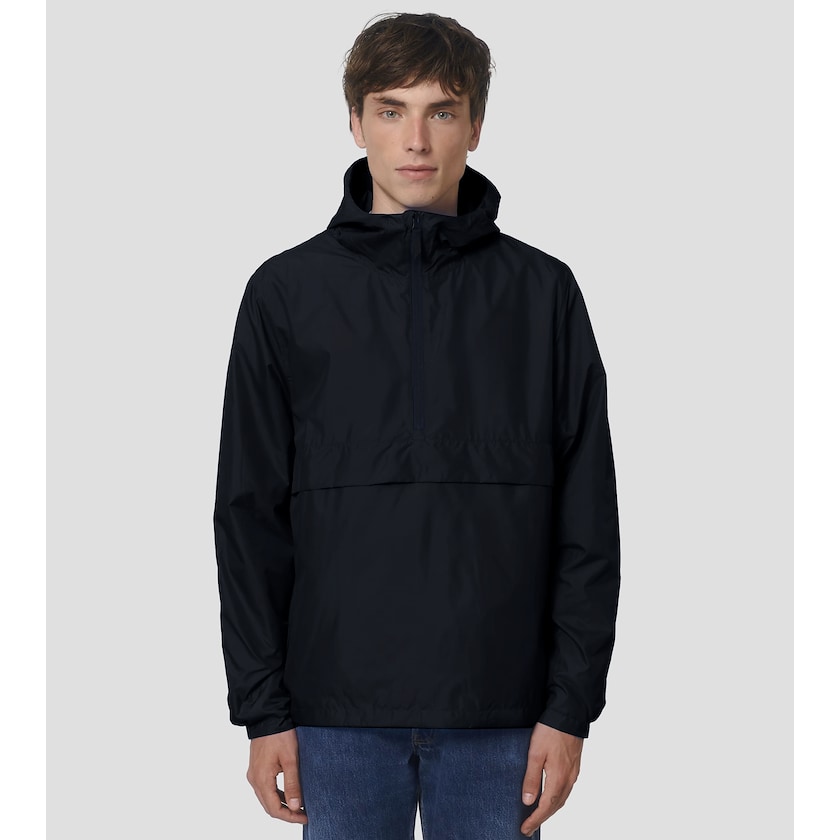 Tynd jakke af træk-på-model af typen anorak. Jakken har hætte og sidelommer. Stoffet er fremstillet af genbrugspolyester. Fås i mange størrelser.