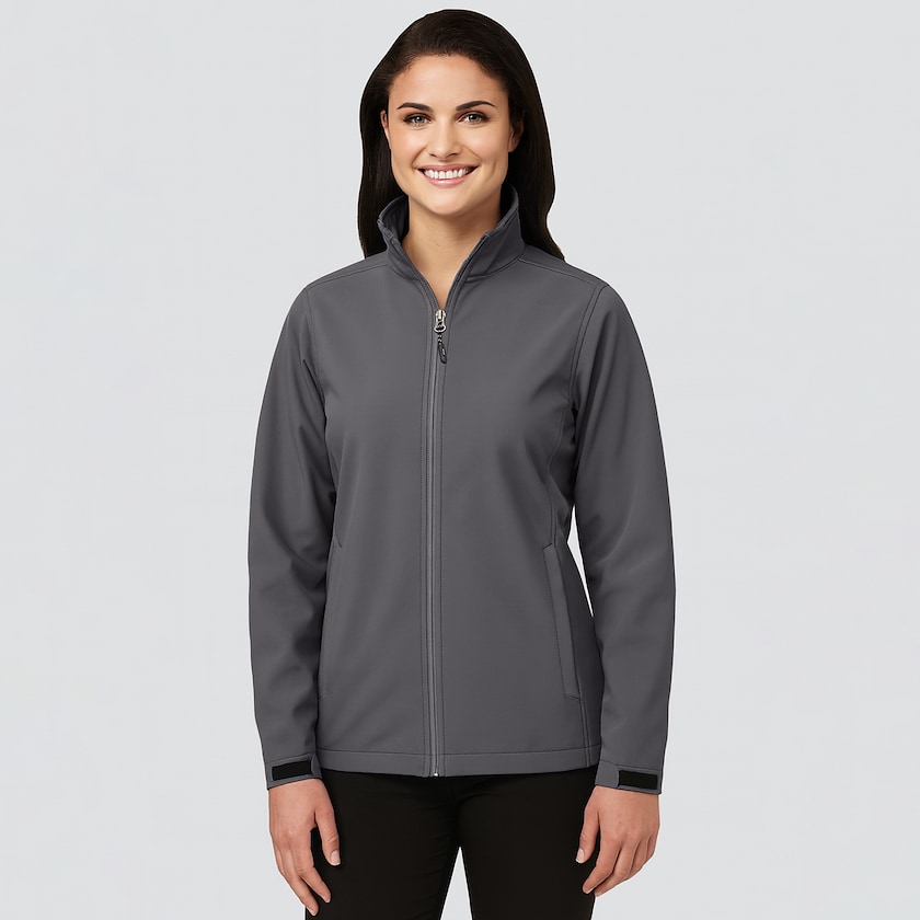 Soft shell jakke til kvinder som kan bestilles fra kun 5 stk. Jakken er 8000 mm vandtæt og 2000 g/m² ventileret. Manchetterne kan justeret. Jakken er både vandtæt og åndbar. Findes også som herremodel.