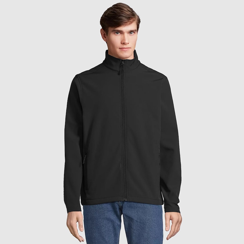 Sporty softshell jakke til mænd. På siderne er der lommer med lynlåse. Stoffet består af to lag og er lavet af 96% polyester og 4% elastan. Foret er fremstillet af 100% polyester.