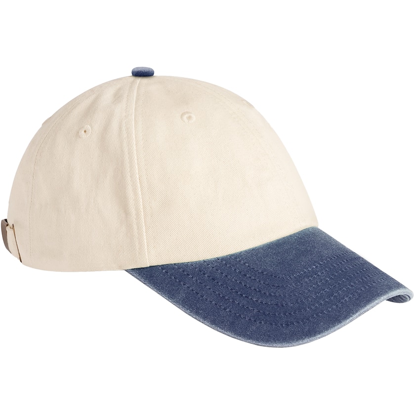 Caps i vintage-stil med kontrastfarvet skygge. Capsen er fremstillet af naturfarvet bomullstwill samt farvet heavy washed bomuld.