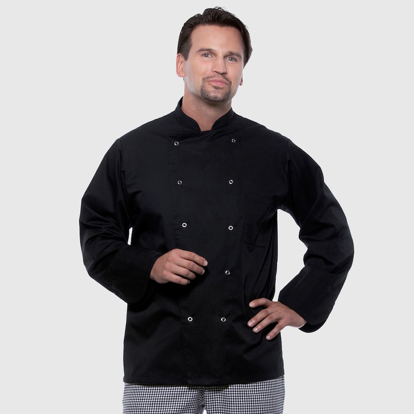 Klassisk kokkejakke af kraftigt stof. Stoffet er fremstillet af en slidstærk blanding af bomuld og polyester. Kokkejakken lukkes med 10 trykknapper. Tåler vask op til 60 grader. Passer til både herrer og damer. Et godt til dig der søger en prisvenlig kokkejakke med brodering.