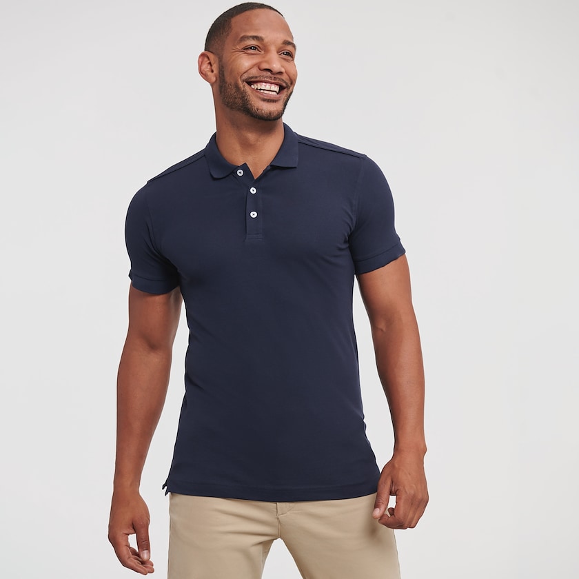 Slim-fit polo til herrer med stretch i stoffet. Stoffet indeholder 5% lycra hvilket gør stoffet behagelig at have på. Leveres stykvis pakket i plastikpose. Findes også som damemodel.