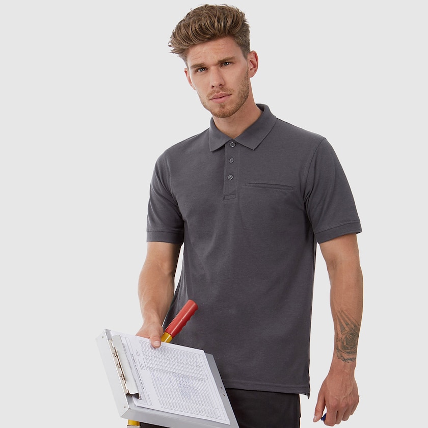 Prisvenlig polotrøje til professionelt brug. B&C Energy Pro er fremstillet i en kraftig polyesterblanding, og har forstærkede syninger. Polotrøjen er forsynet med en skjult brystlomme. Se produktbladet for yderligere information. Leveres stykvis forpakket i plastikpose.