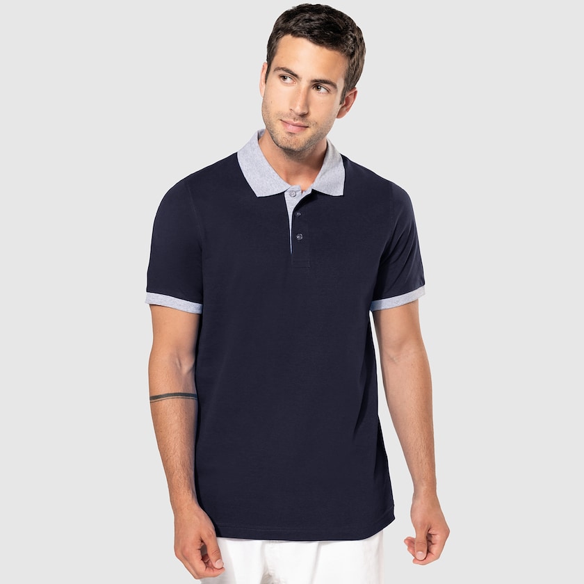 Flot designet polotrøje med kontrastfarvet krave og ærmekanter. Trøjen er fremstillet af 100% bomuld, foruden farven Oxford Grey der er fremstillet af 90% bomuld og 10% viskose. Leveres pakkede enkeltvis i plastposer. Findes også som damemodel.