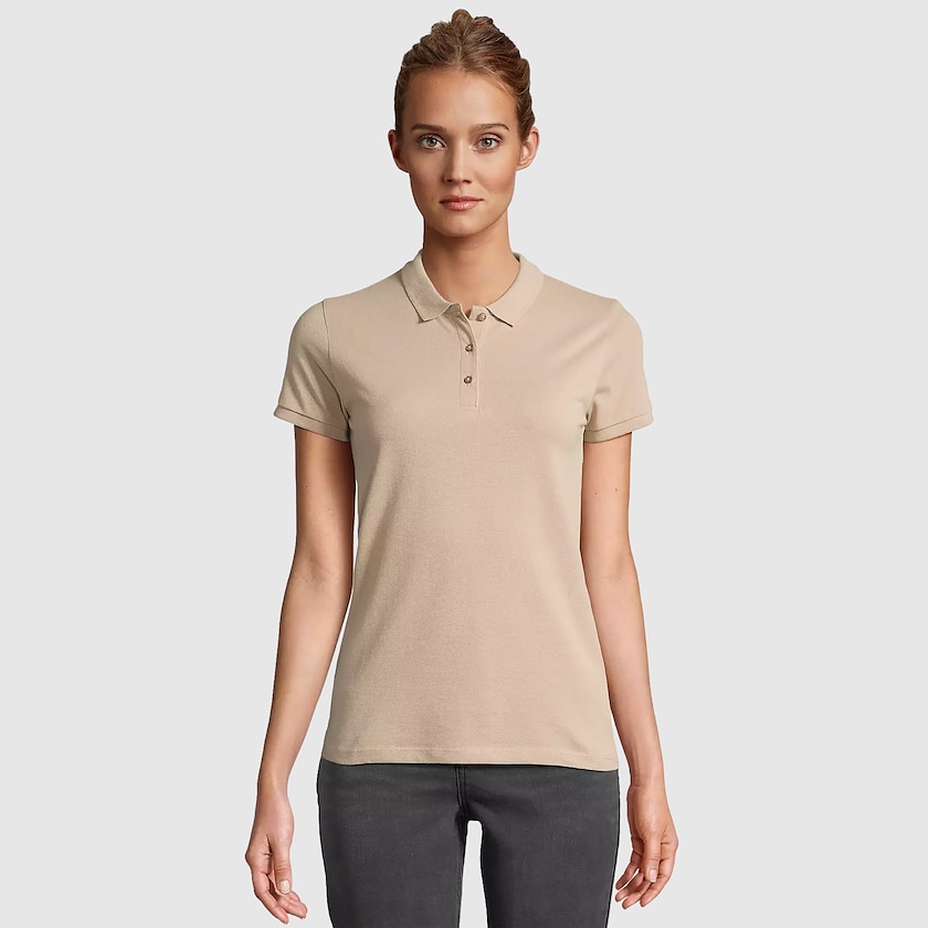 170 grams dame-polo i økologisk avlet bomuld. Trøjen har tre knapper som matcher trøjens farve. Stoffet er certificeret ifølge OEKO-TEX. Findes også som herremodel.