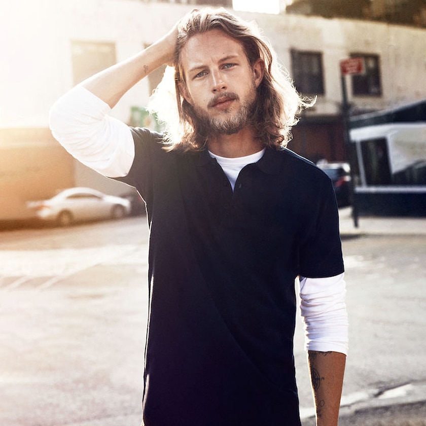 Polotrøje fremstillet af en slidstærk polyesterblanding. Denne model har tre knapper og slidser i siderne.