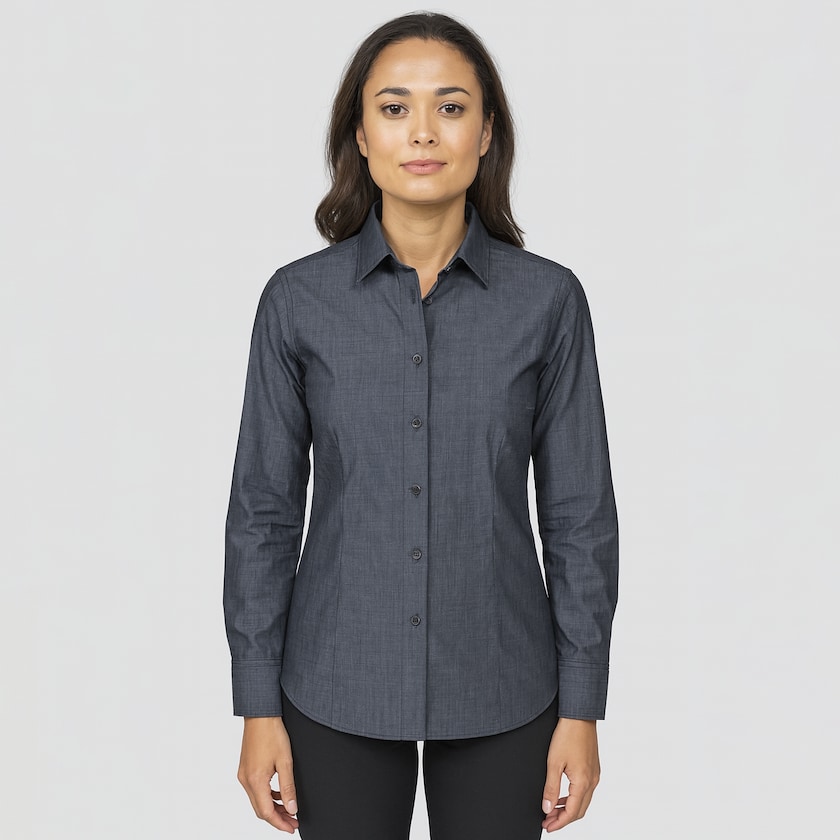 Langærmet dameskjorte i økologisk bomuld. Kraven er af typen "semi-spread". Knapperne er i perlemorsfarve. Findes også som herremodel.