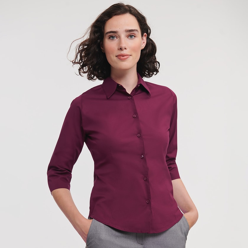 Dameskjorte med en lidt strammere pasform og 3/4-dels ærme. Leveres stykpakkede i plasticpose.