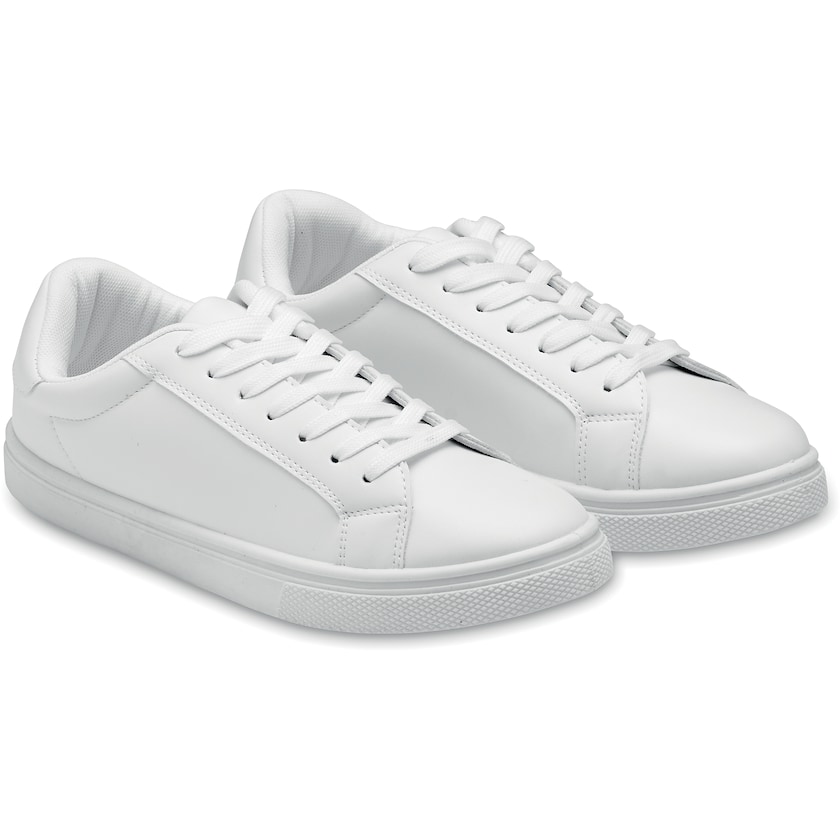 Sneakers med eget logo. Skab unikke sneakers til din virksomhed! Callistoga er lavet af behageligt kunstlæder med gummisål. Snørebåndene er lavet af polyester. Bland størrelser helt selv. Leveres i hvid skoæske. Trykprisen refererer til tryk på en af skoene.