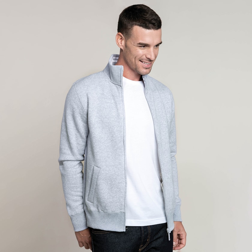 Sporty trøje fra Kariban med lang lynlås og kontraststriber i kraven. Trøjen er fremstillet i et kraftigt, krølfrit stof, og har to lommer. Leveres enkeltvis pakket i plastikpose. Findes også som damemodel.