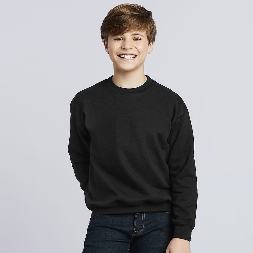 Sweatshirt i slidstærk polyesterblanding. Trøjen til drillesyge børn! Stoffet er vævet ved brug af Air Jet-teknik, hvilket gør trøjen ekstra blød. Gildan Heavy Blend Sweatshirt Kids er det sikre valg, for dig som søger en slidstærk men samtidig behagelig børnetrøje. Trøjerne leveres individuelt pakket i plastpose. Findes også som Voksenmodel.