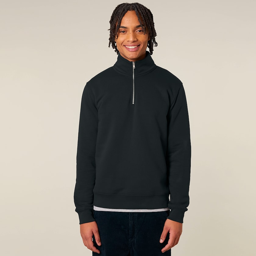 Sweatshirt i unisexmodel med kort lynlås i halsen. Stoffet er lavet 85% økologisk bomuld og 15% genbrugspolyester.
