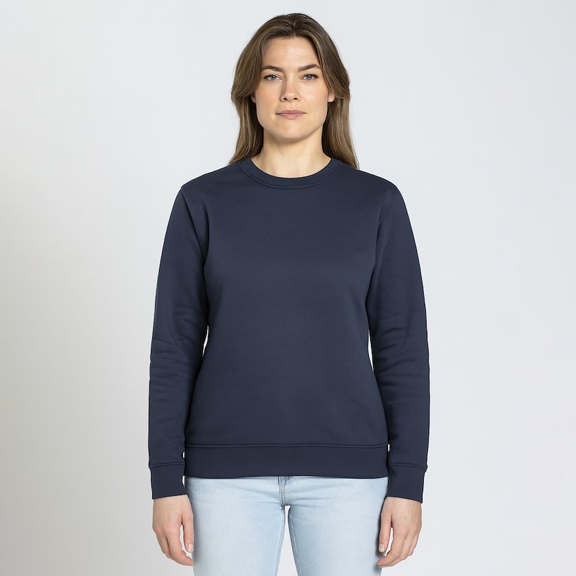 Billig sweatshirt til damer med et ekstra slidstærkt stof. Stoffet vejer 240 g/m² og er fremstillet af 50% bomuld og 50% polyester. Findes også som herremodel.