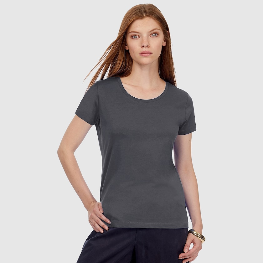 T-shirt til kvinder i stof af 100% økologisk bomuld. Denne t-shirt har et blødt og behageligt stof og en pasform der fremhæver en feminin silhuet. Leveres stykvis i plastikpose. Alle farver er lavet af 100% økologisk bomuld udover farven sport grey som er produceret i 90% økologisk bomuld og 10% viskose. Findes også som herremodel.