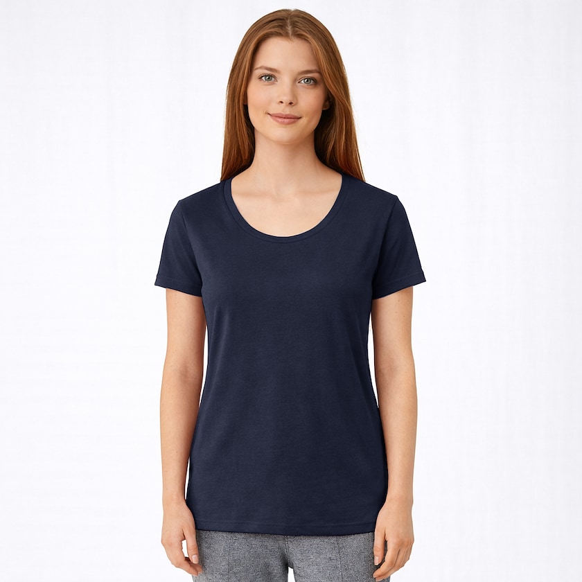 Bekvem dame t-shirt med indslag af viskose. Stoffet er lavet af 50% polyester, 25% bomuld og 25% viskose. Blandingen giver en superblød og bekvem t-shirt. Leveres enkeltvis pakket i plastpose. Findes også som herremodel.