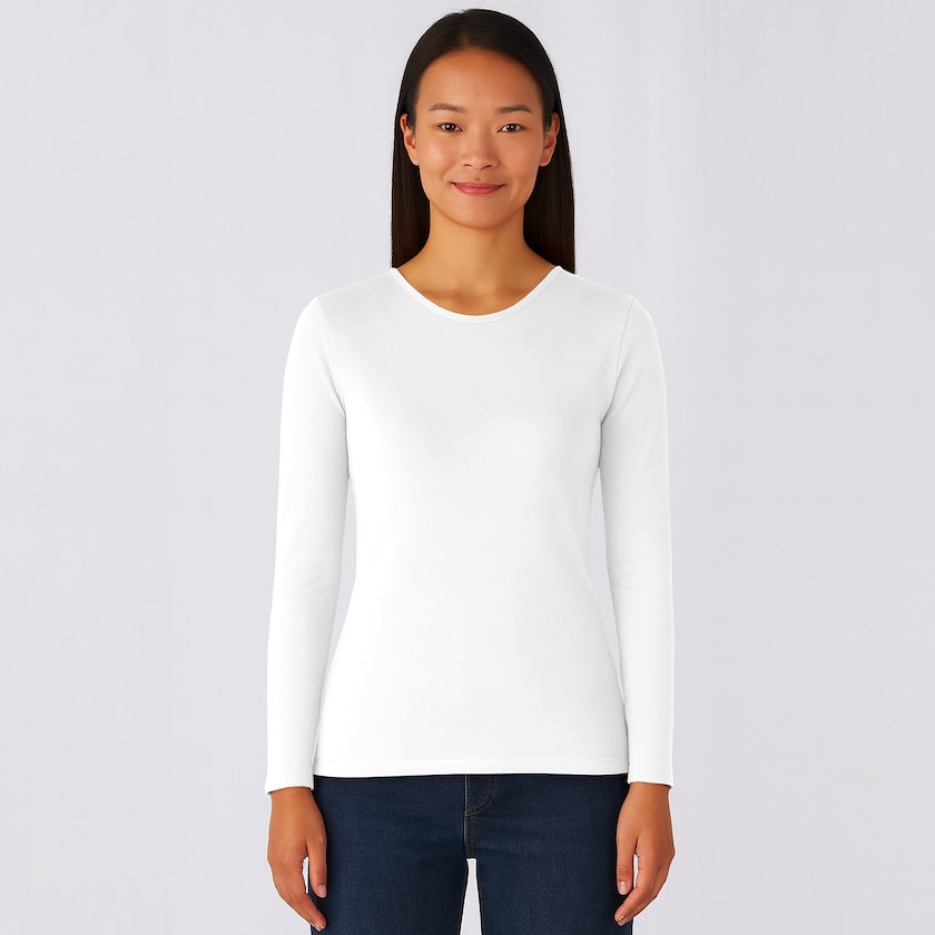Langærmet dame-t-shirt med moderne pasform. T-shirten er fremstillet af et 185 grams bomuldsstof som fås i mange forskellige farver. Findes også som herremodel.