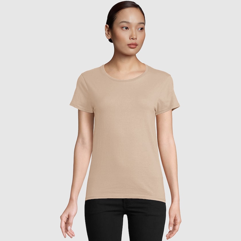 Dame-t-shirt med økologisk bomuldsstof. Kan købes med logo fra kun 10 stk. T-shirten er i et 175 grams stof i 100% økologisk bomuld. Stoffet har en naturlig blød følelse. Findes også som herremodel.