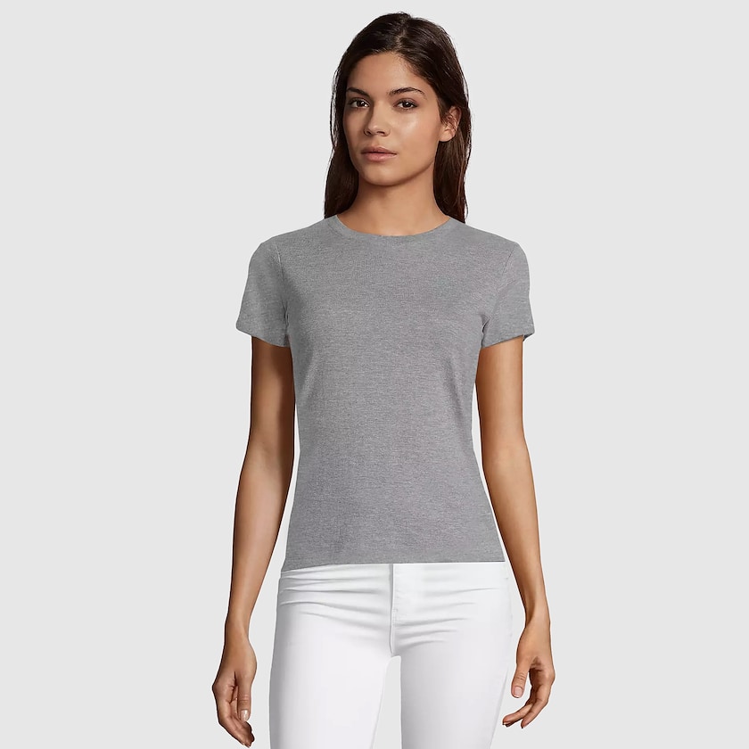 Figursyet dame-t-shirt fra populære SOL´s. Stoffet er i kvaliteten 150g/m² og er fremstillet i 100% OEKO-TEX-certificeret bomuld. Modellen er lille i størrelserne. Findes også som herremodel.