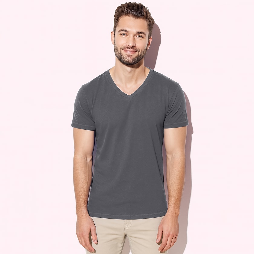 Figursyet T-shirt fra Stedman V-formet halsudskæring. Trøjerne leveres pakket enkeltvis i plastpose.
