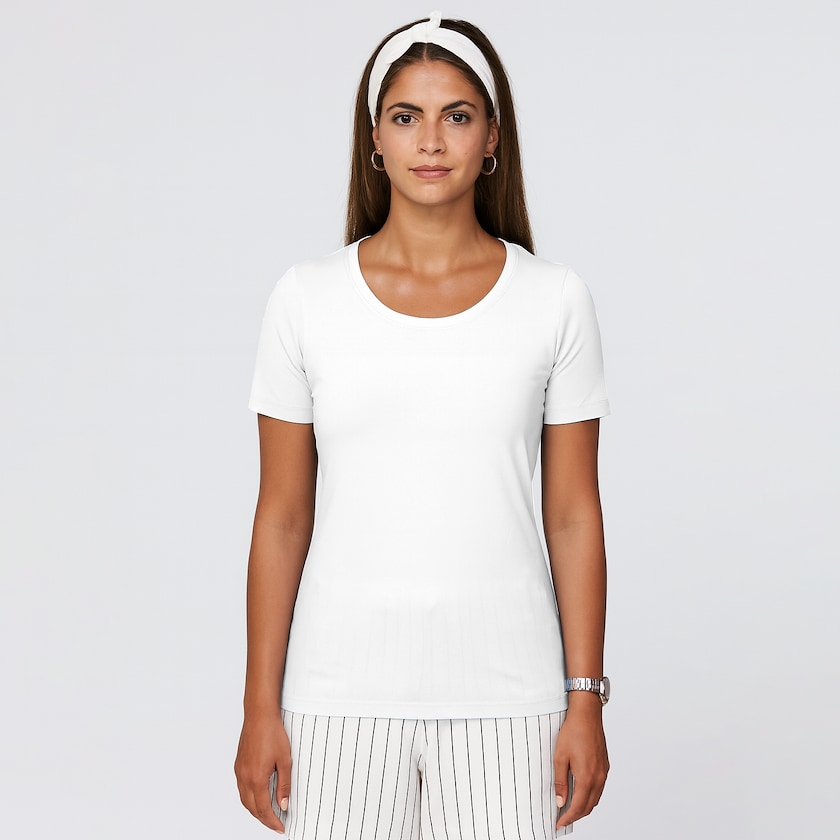 Skøn t-shirt med stretch i 90% bomuld og 10% elastan. Ladies Stretch Tee er fremstillet ved brug af Full Feeder Elastan, som giver trøjen en god stabilitet. T-shirten er ideel til et afslappet look. Leveres enkeltvis pakket i plastikpose.