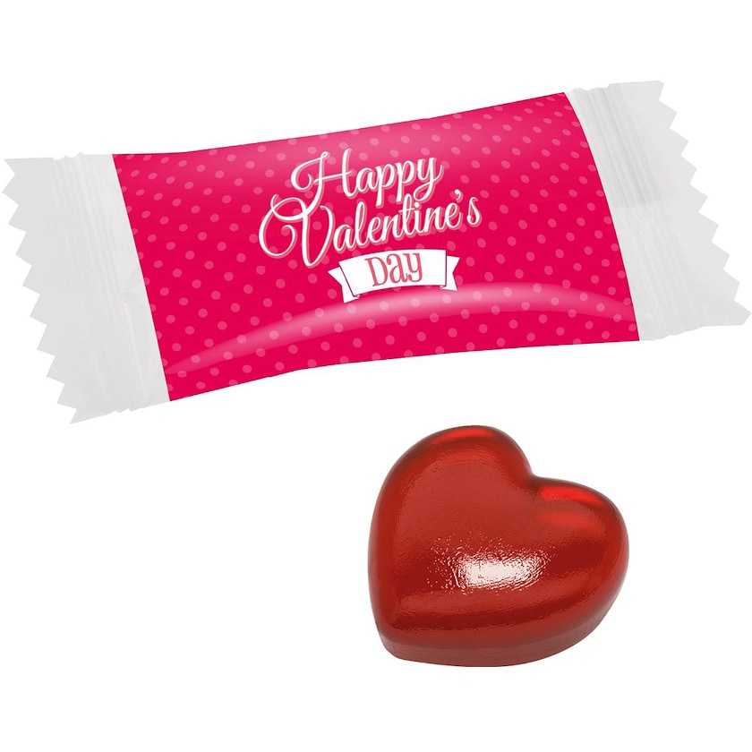 Hjerteformet bolche i flowpack. Hele indpakningen designes efter dine ønsker. Et bolche som lader dig vise dine følelser!