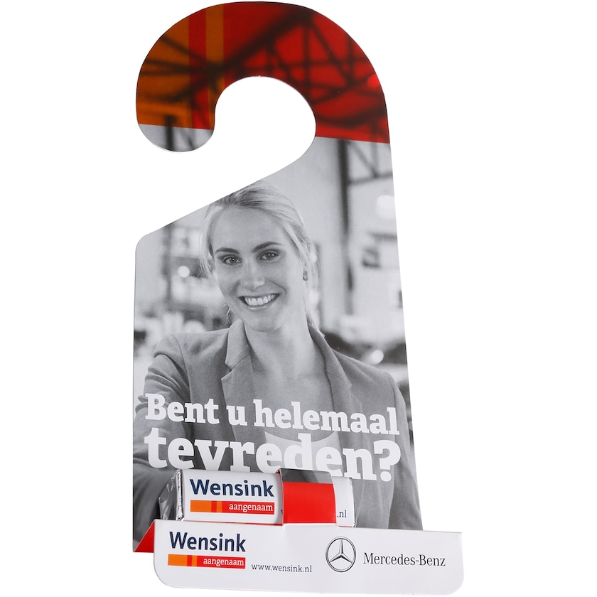 Mintemballage med krog til at hænge i bakspejlet. Perfekt til bilforhandleren! Emballagen er af pap og digitaltrykkes helt efter dine ønsker. Pastillerne har hele 36 måneders holdbarhed.