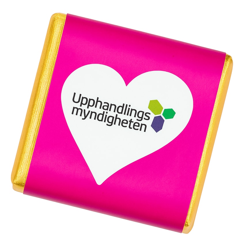 Chokoladeplade fyldt med den fineste belgiske chokolade. Kvadraten bruges til at brande din virksomhed internt, på møder og konferencer eller i restauranten til kaffen efter en god middag. Vælg mellem tre forskellige smagsvarianter. Du vælger også selv om du vil have sølv- eller guldfarvet folie.