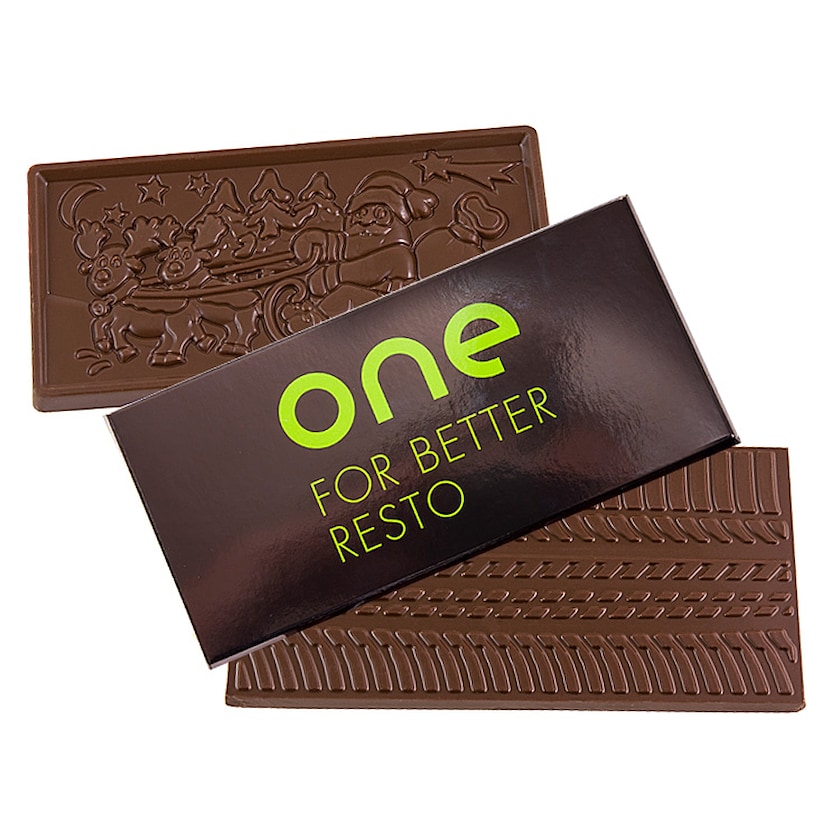 Chokoladebar med dit motiv præget på topsiden. Chokoladebar Salisbury kan fås i smagsvarianterne mælkechokolade med 44% kakaoindhold eller mørk chokolade med 75% kakaoindhold. Hav i tanke, at små detaljer ikke kan gengives på en god måde. Chokoladebaren leveres i en papæske som trykkes efter dine ønsker.