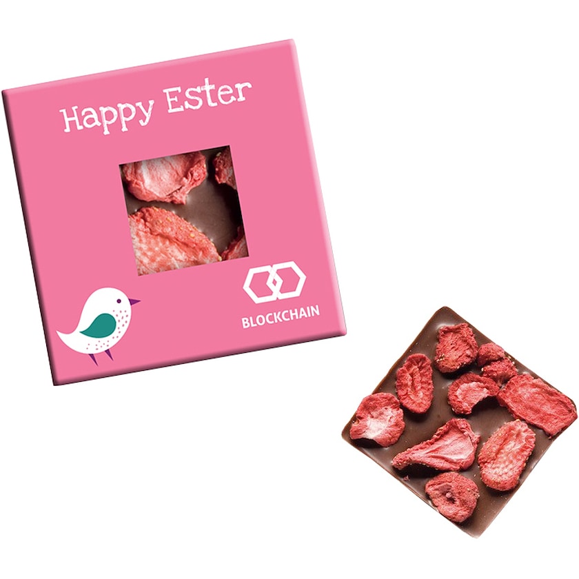 25 gram førsteklasses chokolade med fyld. Vælg mellem flere forskellige smage. Chokoladen er af højeste kvalitet. Pakken digitaltrykkes i CMYK. Pakken kan endda offsettrykkes i Pantonefarver (se artikelnummer 16542).
