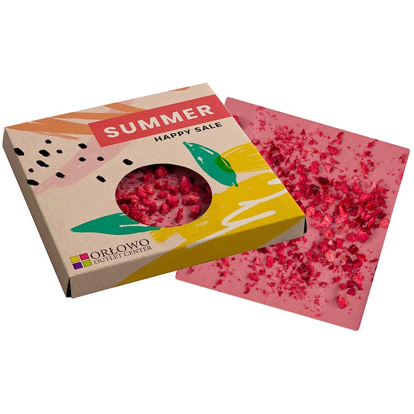 Luksuriøs chokoladebar hvor du kan vælge mellem 4 forskellige chokoladetyper og 9 tillæg. Vælg chokoladetype og det tillæg du ønsker og skab din egen helt unikke chokoladebar. Hele emballagen trykkes efter dine ønsker.